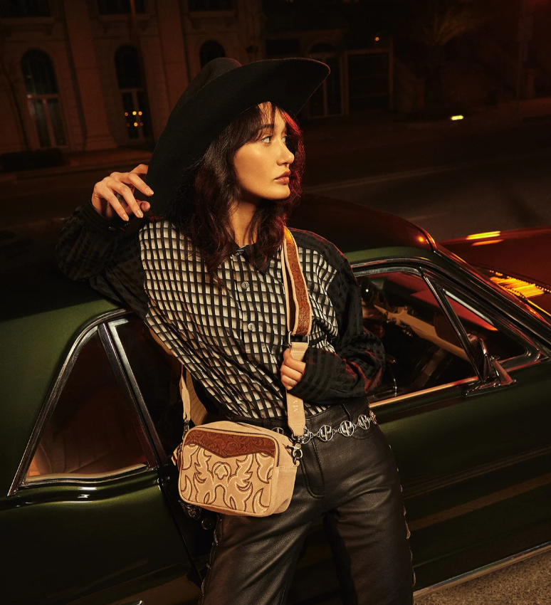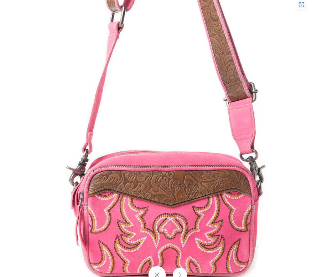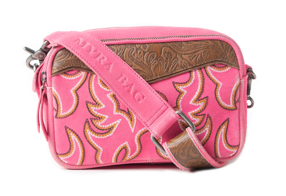 Make a bold statement with our vibrant fuchsia shoulder bag, featuring intricate Western-inspired embroidery in rich chocolate tones. The perfect fusion of playful and sophisticated, this compact companion offers versatile styling with its adjustable strap and sleek silhouette. A true conversation starter!