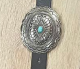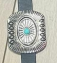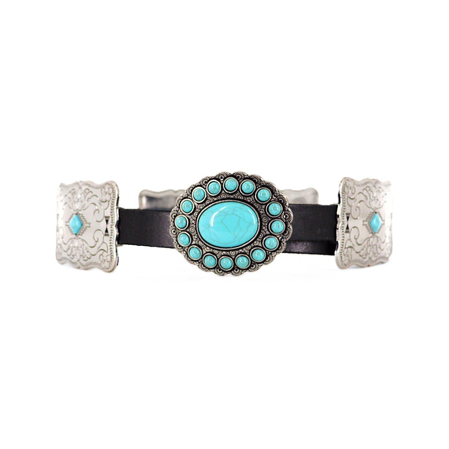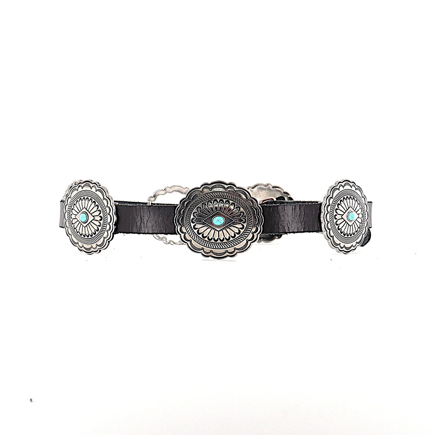 FASHION EXPRESS Black Leather Belt with Silver and Turquoise Accent
