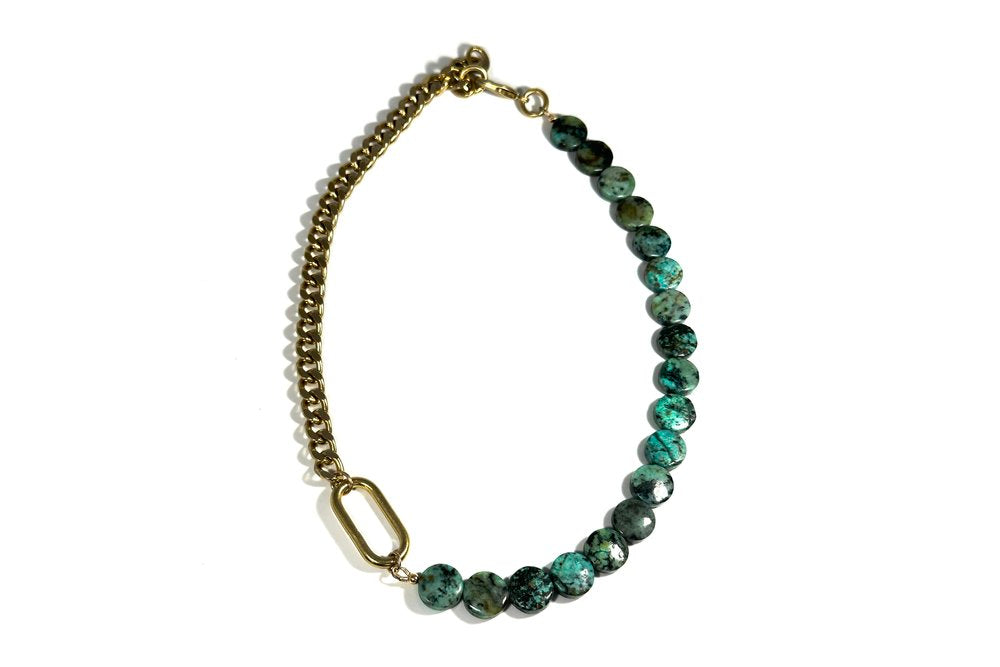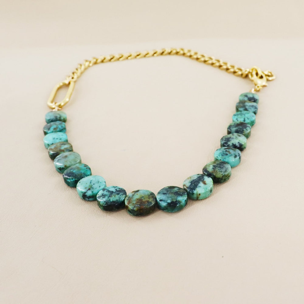 RACHEL NATHAN Race Track & African Turquoise Coin Necklace