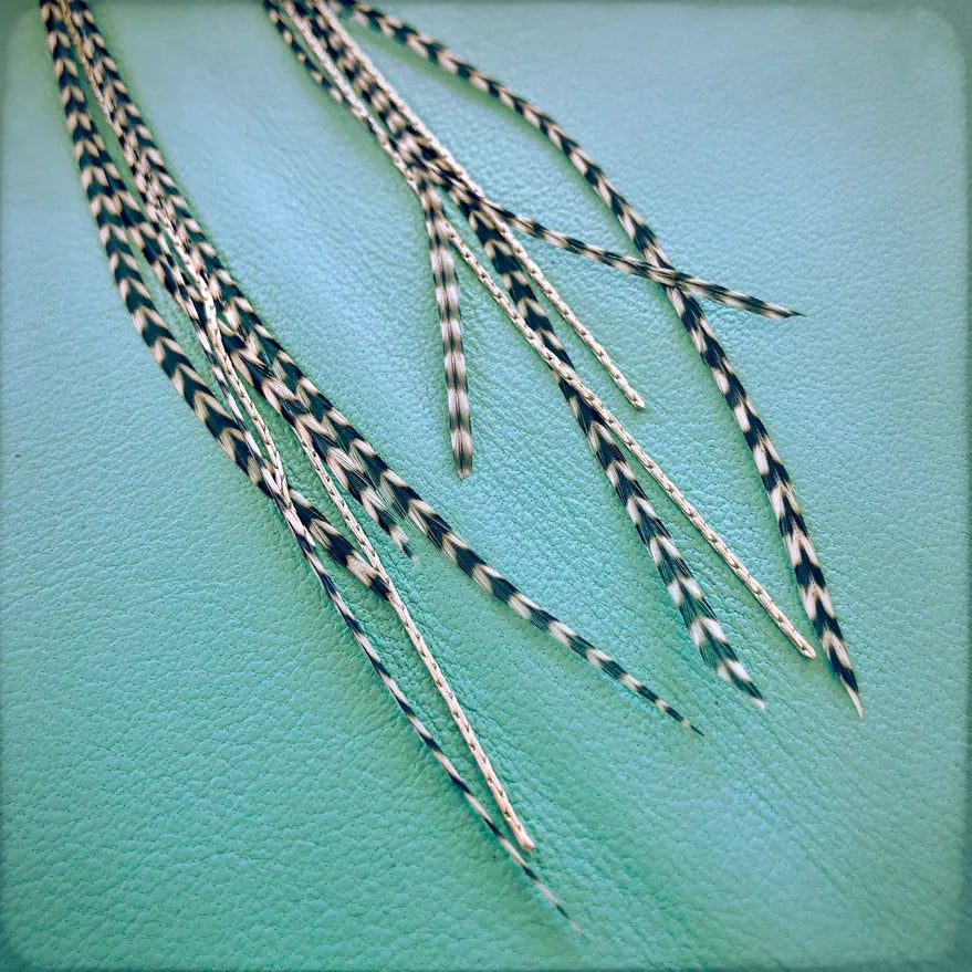 Coque feathers are from unique roosters that grow these exceptionally long feathers and shed them once a year. These birds have been bred for over 100 years by fly fishermen, who use the feathers as fishing lures.
