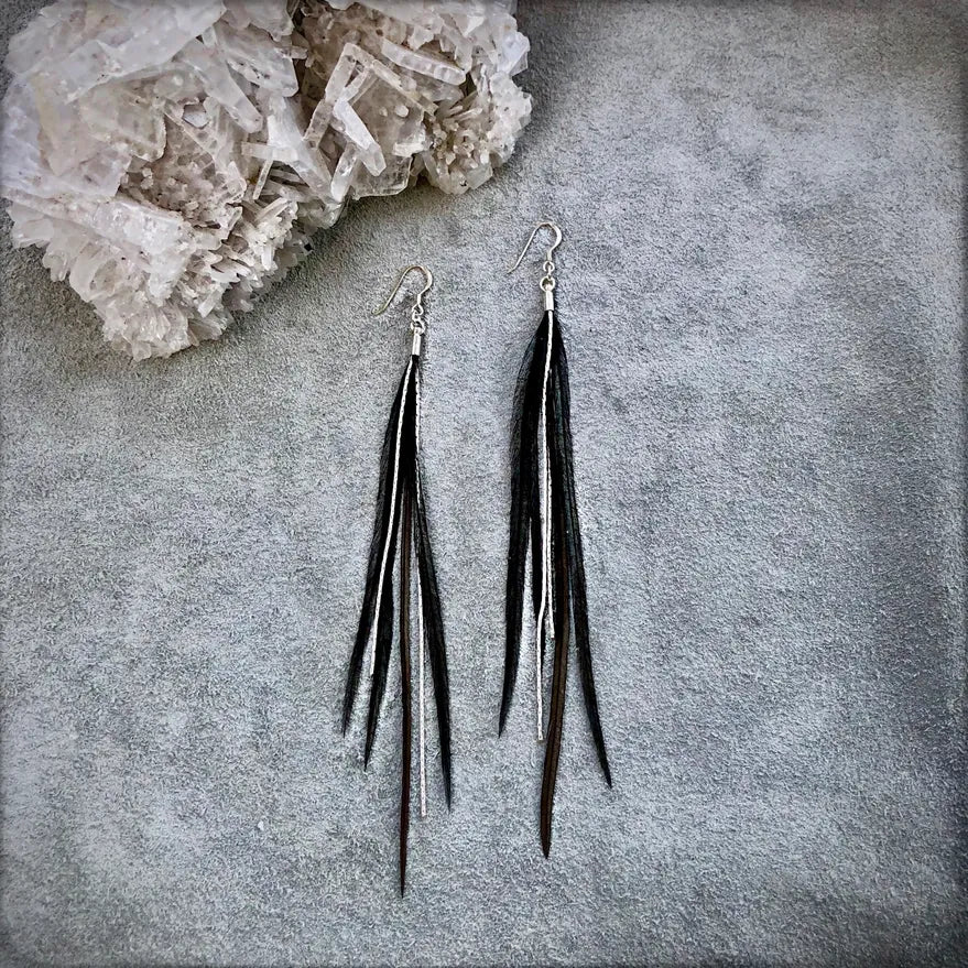 These delicate earrings are incredibly soft to the touch. Rhodium-plated chains peek out between the feathers to add texture.