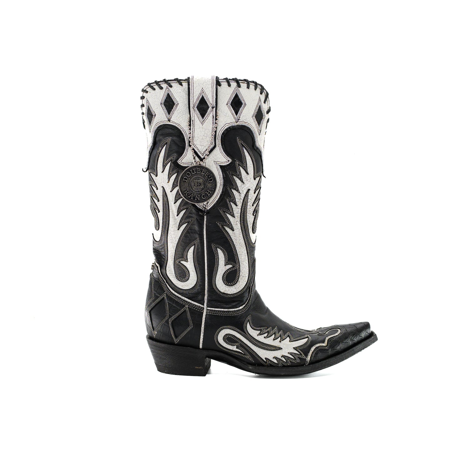 Cowgirl Rising boots are handcrafted from premium Vegan Goat Leather. These boots feature intricate flame inlays, diamond accents, and a sleek pointed toe. The durable outsole and traditional heels offer style and comfort for everyday wear.