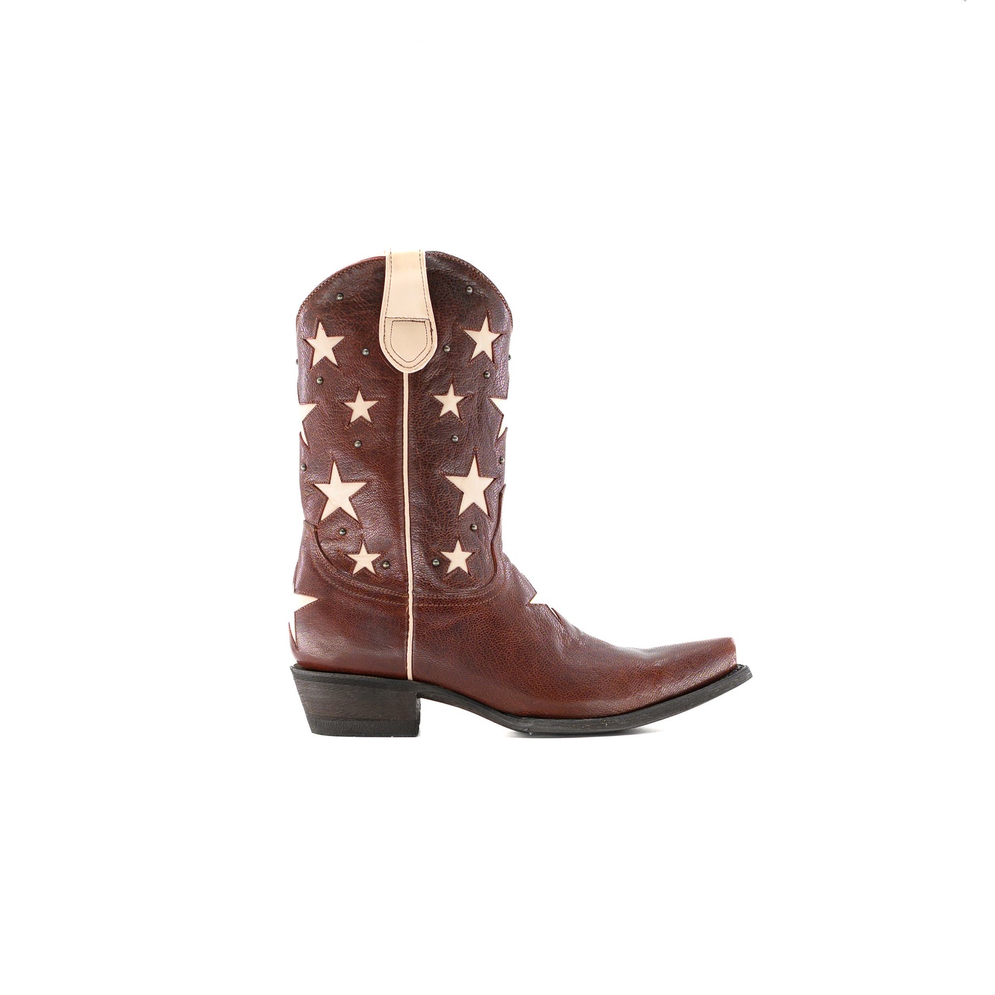 The One Star boots feature intricate star inlays along the 10" shaft, allowing the handcrafted distressed whiskey leather to pop. Designed for everyday wear, they feature a sturdy outsole and a comfortable traditional heel to keep you going all day long.