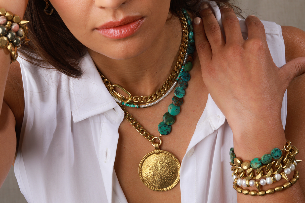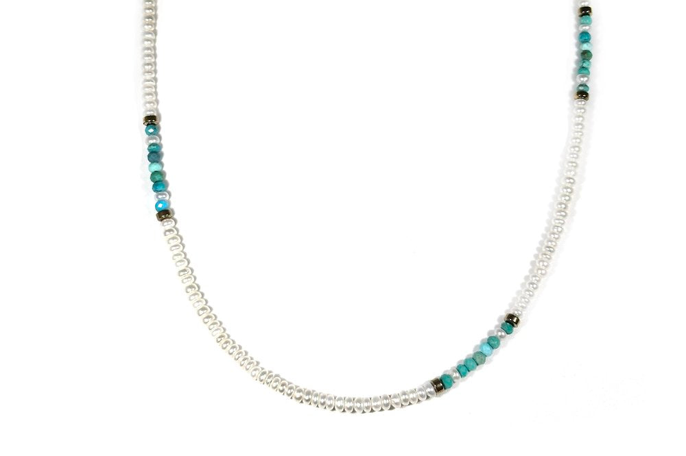 RACHEL NATHAN Mini Pearl & Turquoise Necklace