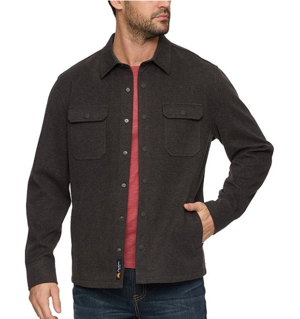 Crafted like your favourite button-down shirt, but built like a jacket, this premium outer layer is designed to elevate everyday comfort. Made from an ultra-soft brushed fabric reinforced with stretch, this mid-weight shirt jacket delivers maximum mobility and all-day versatility. Impeccably tailored and detailed with refined lines and seams, it looks as good buttoned up as it does unbuttoned. Dual front flap pockets + angled slit pockets allow you to keep your essentials close and secure. Classic shirt collar; rubberized snap closures.