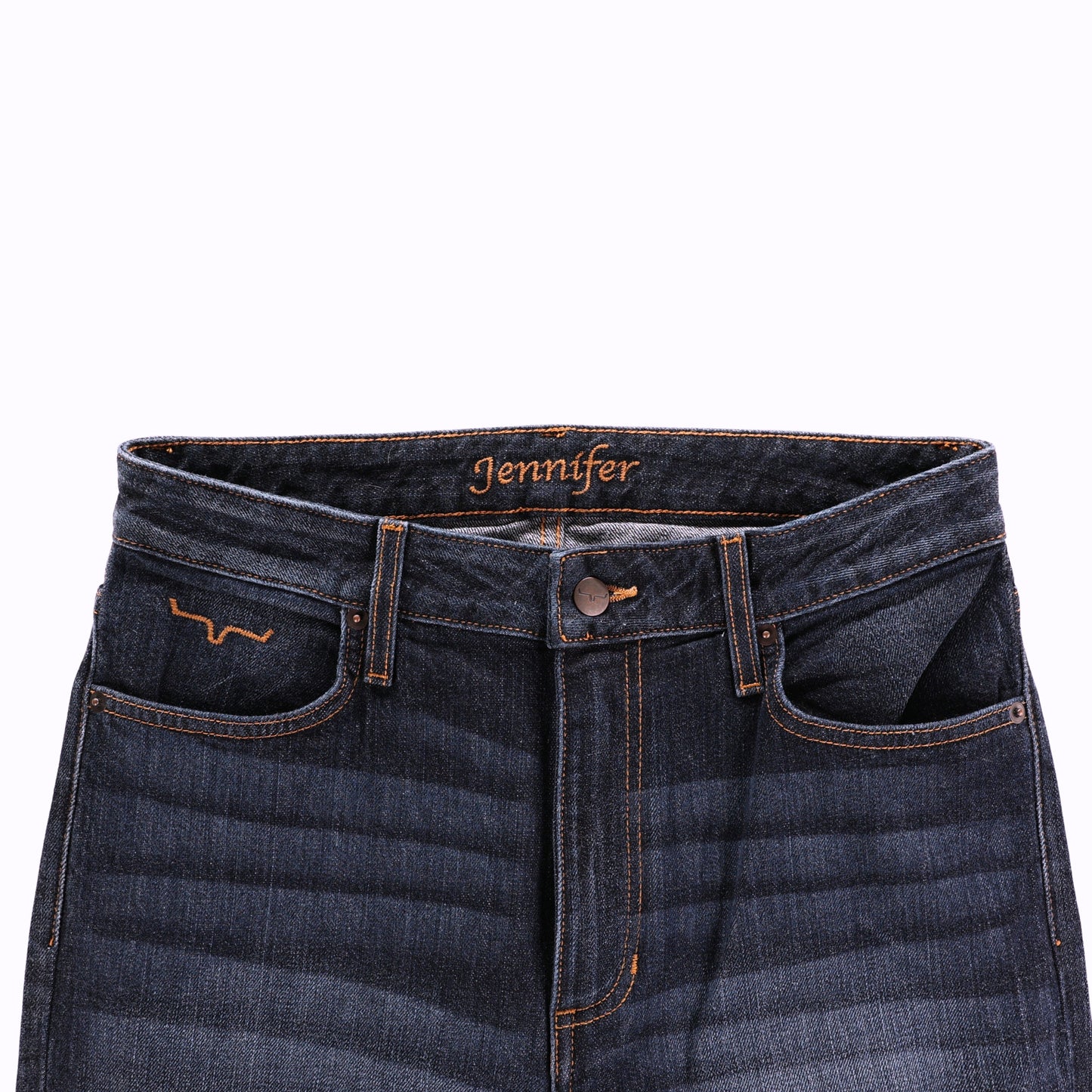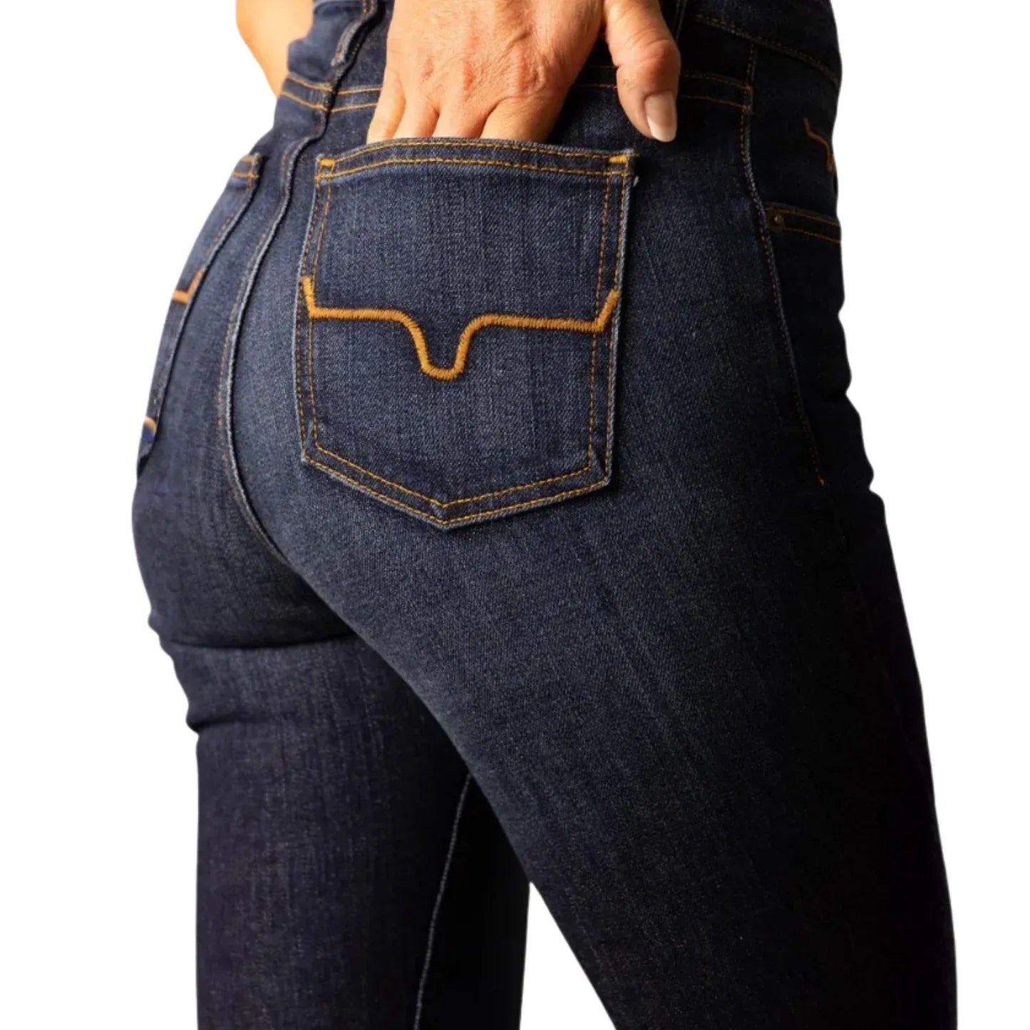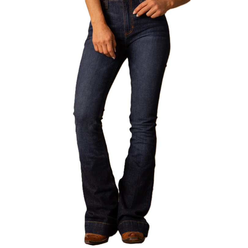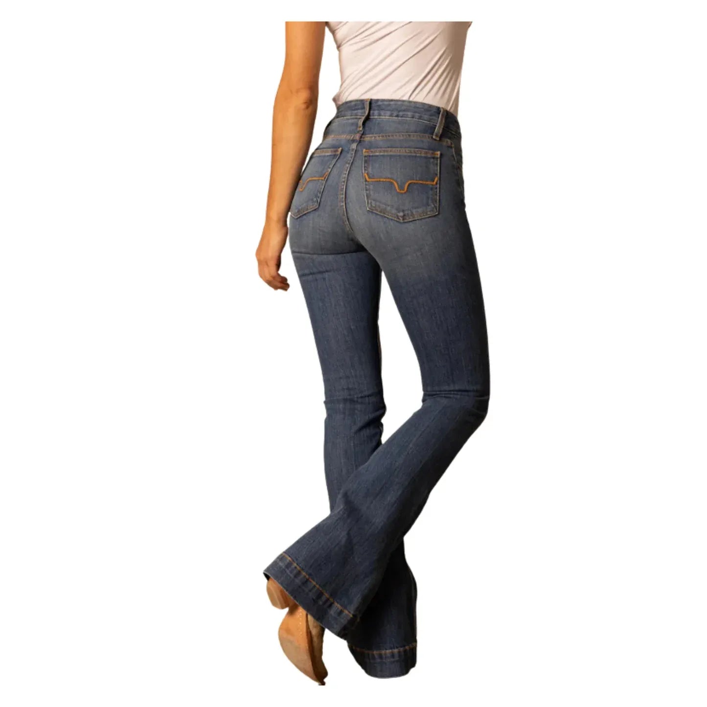 With an ultra-high rise and super wide flare leg, the Kimes Ranch Jennifer jean flatters all shapes and sizes. The Jennifer makes a statement in the saddle or the city streets in a dark wash with hand-sanding whisker details. This is a popular style of jeans from Kimes Ranch and the Mid Wash colour is a new option.