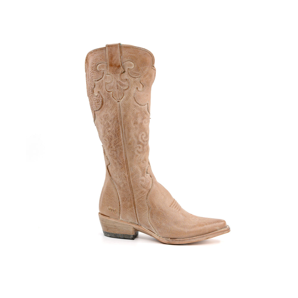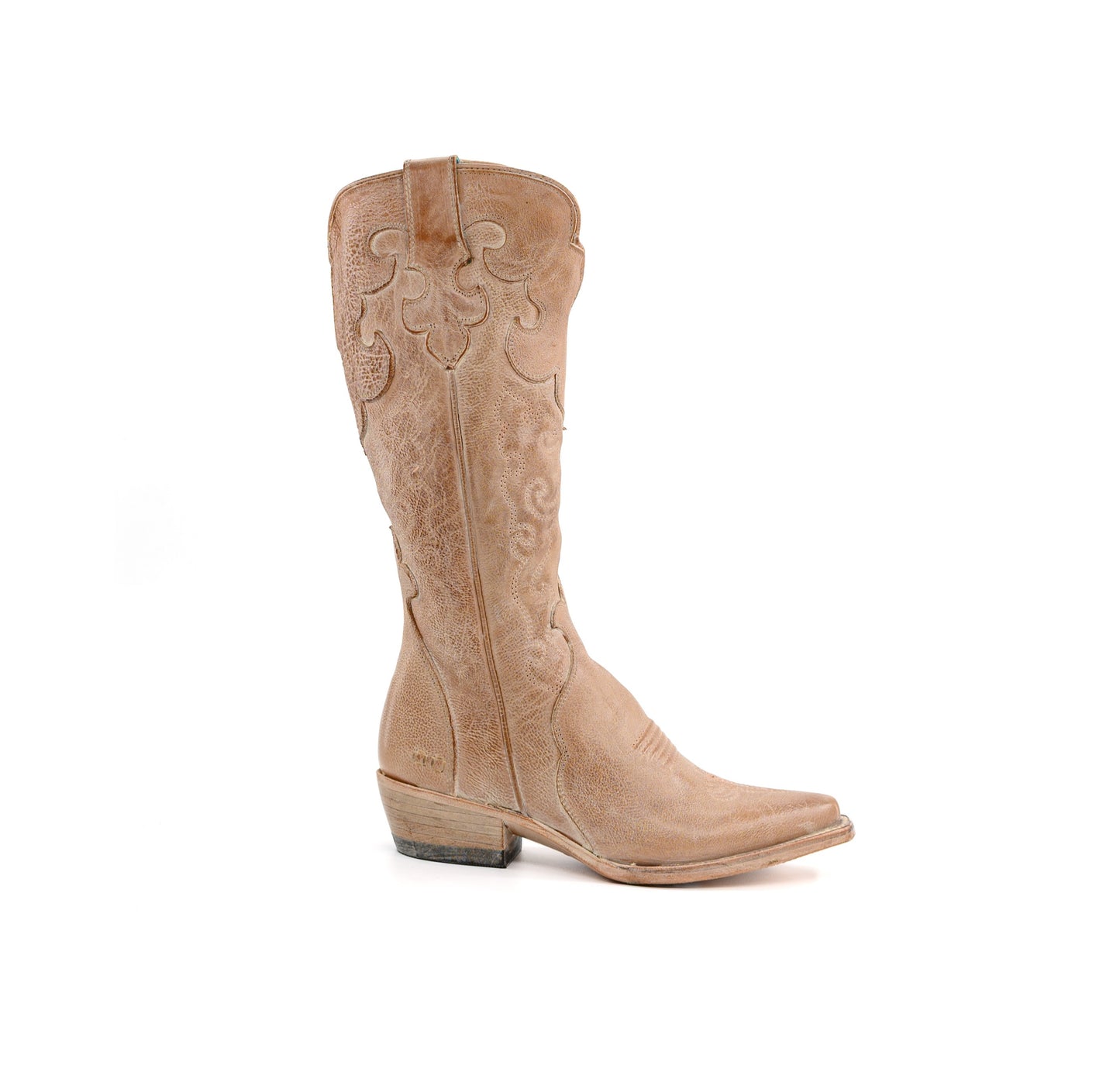 These western inspired tall boots stand out by their fleur-de-lis detailing. Made with chrome and formaldehyde free vegetable tanned leather, the Queen are both unique and convenient with the side zipper for easy wear. With graceful design accents and a beautifully shaped toe, these boots strike the perfect balance between fashion and function.