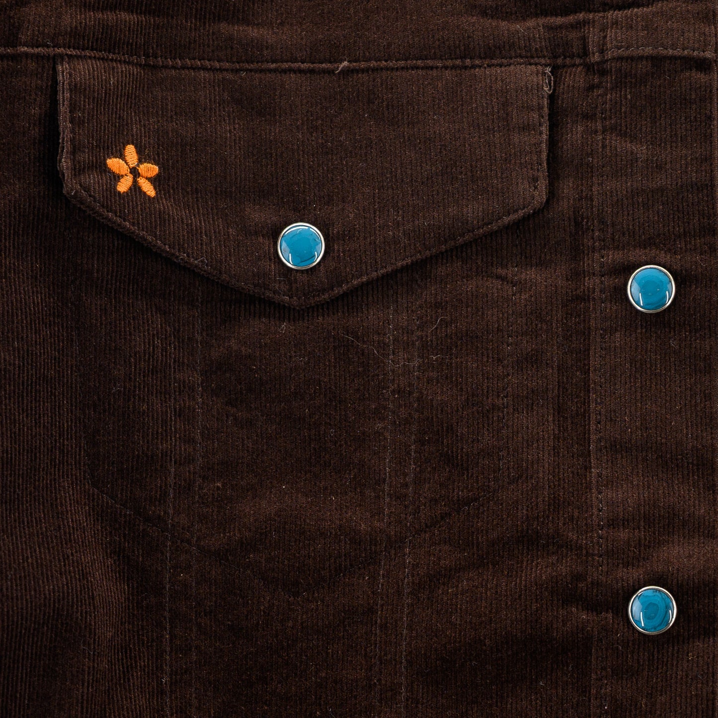 Ready to wear Western artistry like never before? The Cordelia Shirt pairs chocolate corduroy with turquoise embroidery, sculpted yokes, and snap buttons for a look that’s elegant, unexpected, and full of character.
