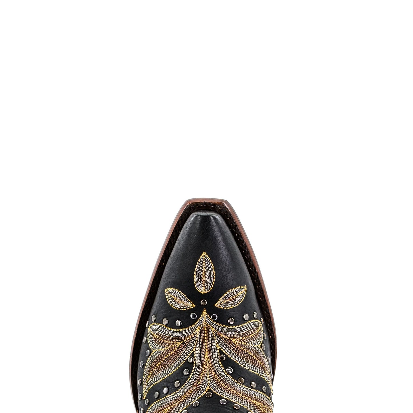 Made for those who love standout western style, the Zinnia boots feature intricate metallic thread and gunmetal studs that pop against rich black genuine leather. Bold, polished, and undeniably western, they pair striking design with all-day comfort thanks to a smooth leather lining, soft leather insole, and leather outsole with a rubber heel cap.