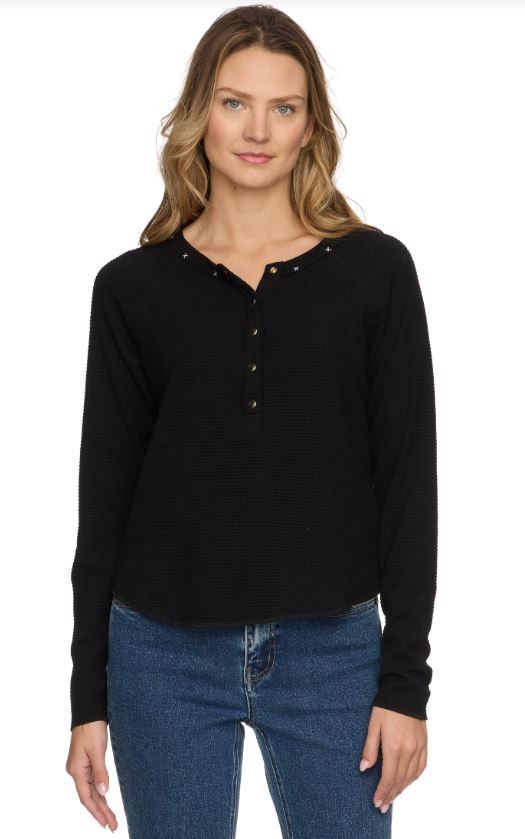 FLAG & ANTHEM Cambria Embroidered Waffle Henley Long Sleeve Top