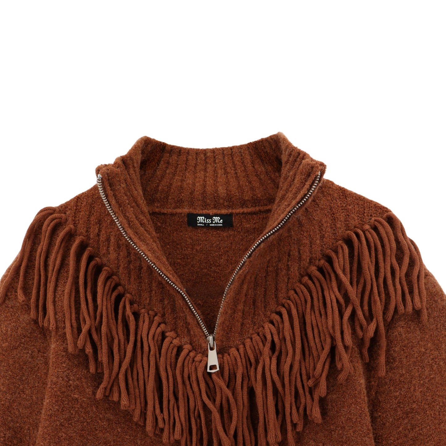 MISS ME Turtleneck Sweater With Fringe Details