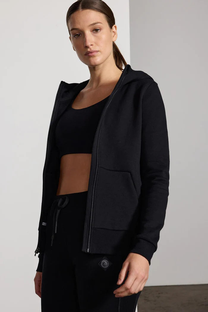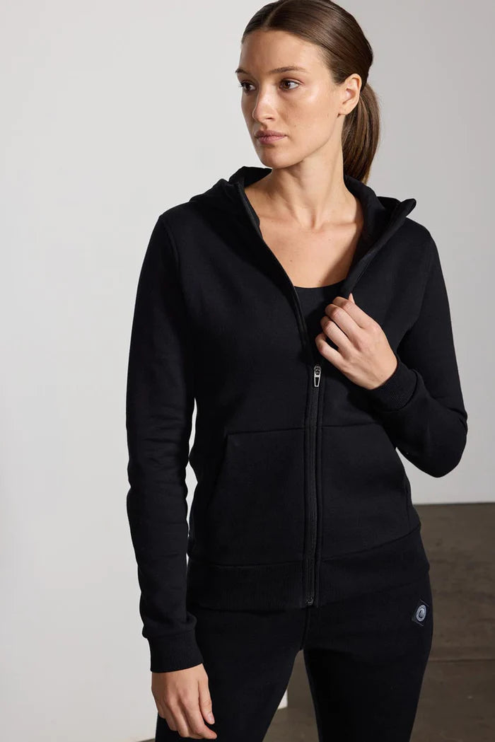 Elevate your casual wardrobe with the Women's Mondetta Zip-Up Hoodie, available in the sophisticated tones of Stone and Black.