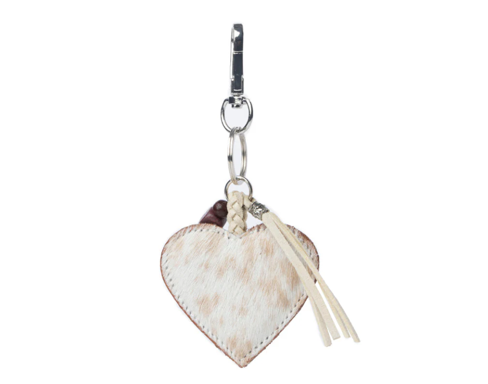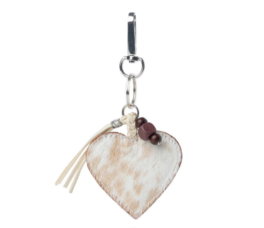 Elevate your everyday essentials with our artisanal hair-on hide heart fob. Luxurious black and white pattern with suede tassels and crystal-beaded accents. Always naturally unique!