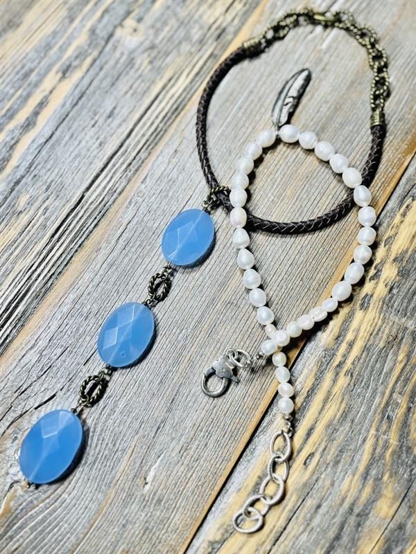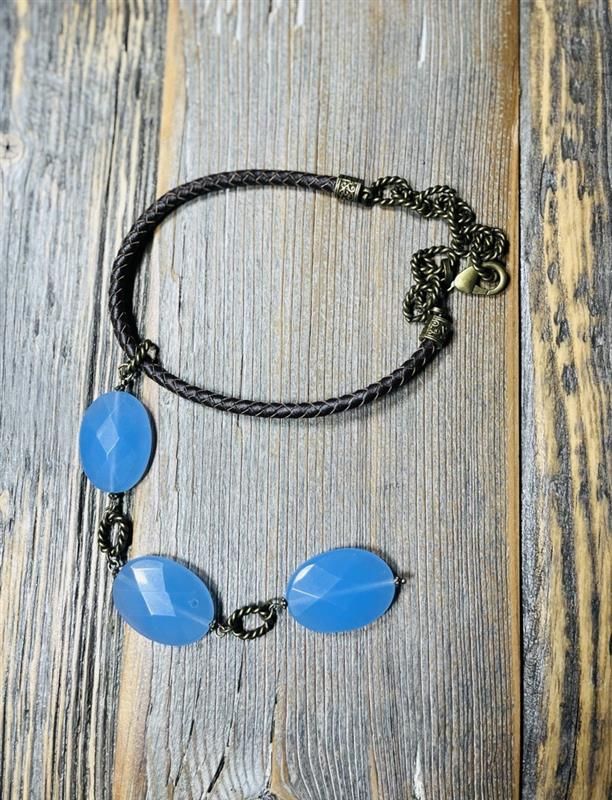 AMY KAPLAN Braided Short Necklace with Three Blue Drops