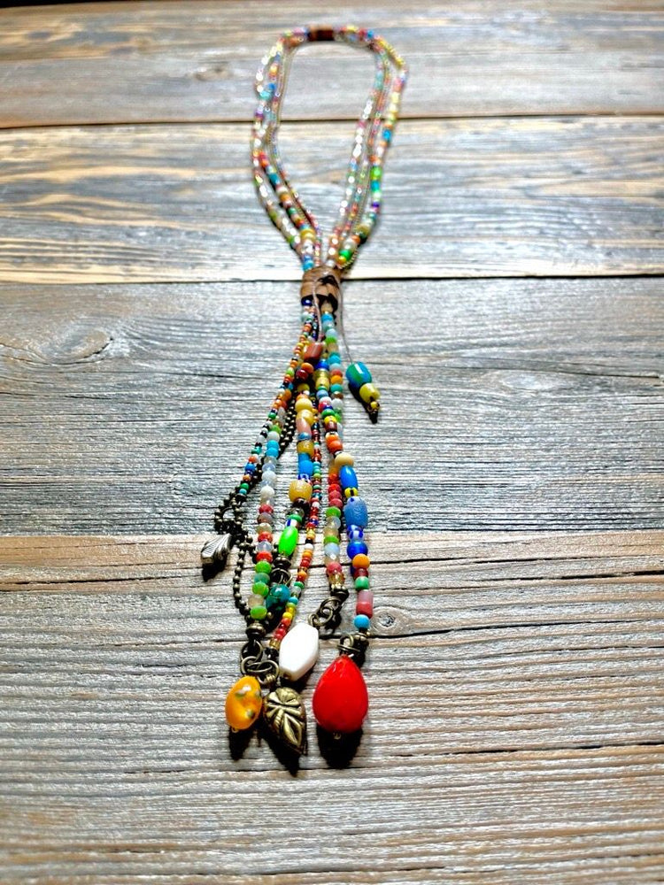 AMY KAPLAN Multicolor Bright Beaded Clutch Necklace