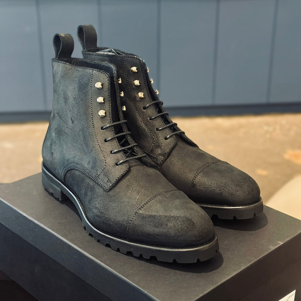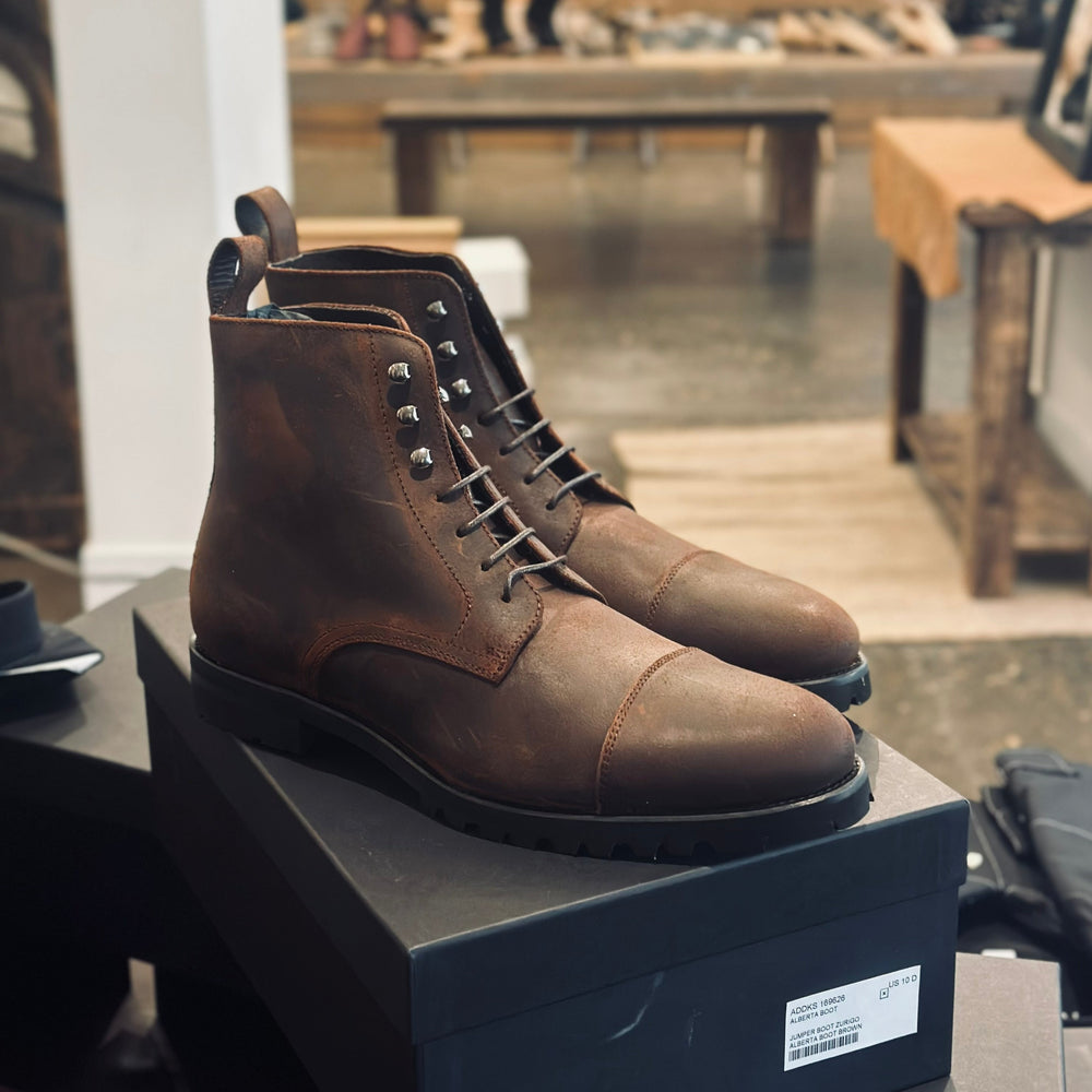 The Men's Waxed Suede Lace-Up Boot, a testament to the collaborative craftsmanship between Alberta Boot and Calgary-Based World of Vici.