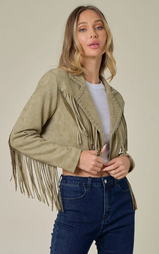 SAINTS & HEARTS Suede Fringe Stud Jacket